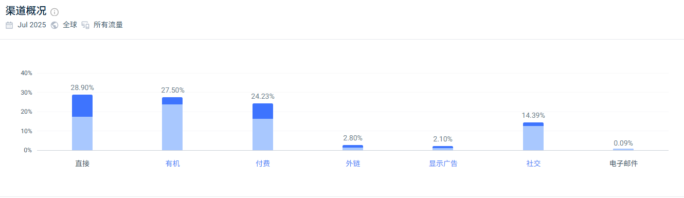 在销量起势后,Fiido开始将重心转向独立站运营。到2025年7月,独立站的全球月访问量已达170万,其中直接流量占比达到29%,意味着三成用户会主动搜索品牌名或输入网址进站。这种布局,让Fiido不再完全依赖平台流量,即便某个平台因政策下架,用户也能直达官网下单。