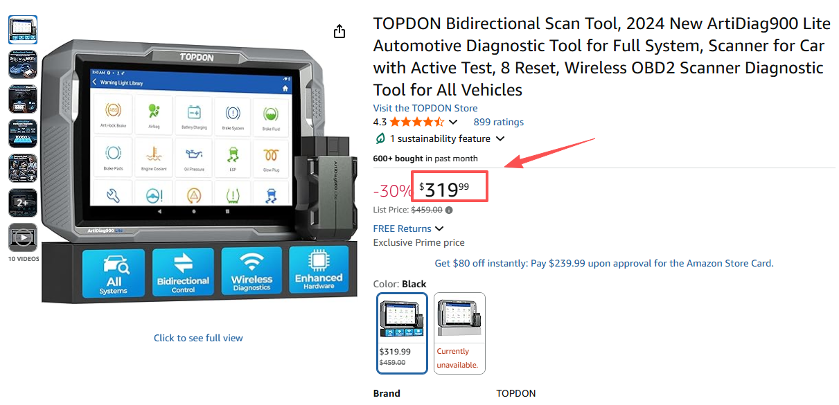 中端级:ArtiDiag 900 Lite(约US$319.99)。为深度汽车DIY用户设计,支持全系统诊断,覆盖发动机、变速箱、ABS等模块,界面清晰、功能全面,满足“半专业”用户的高需求。