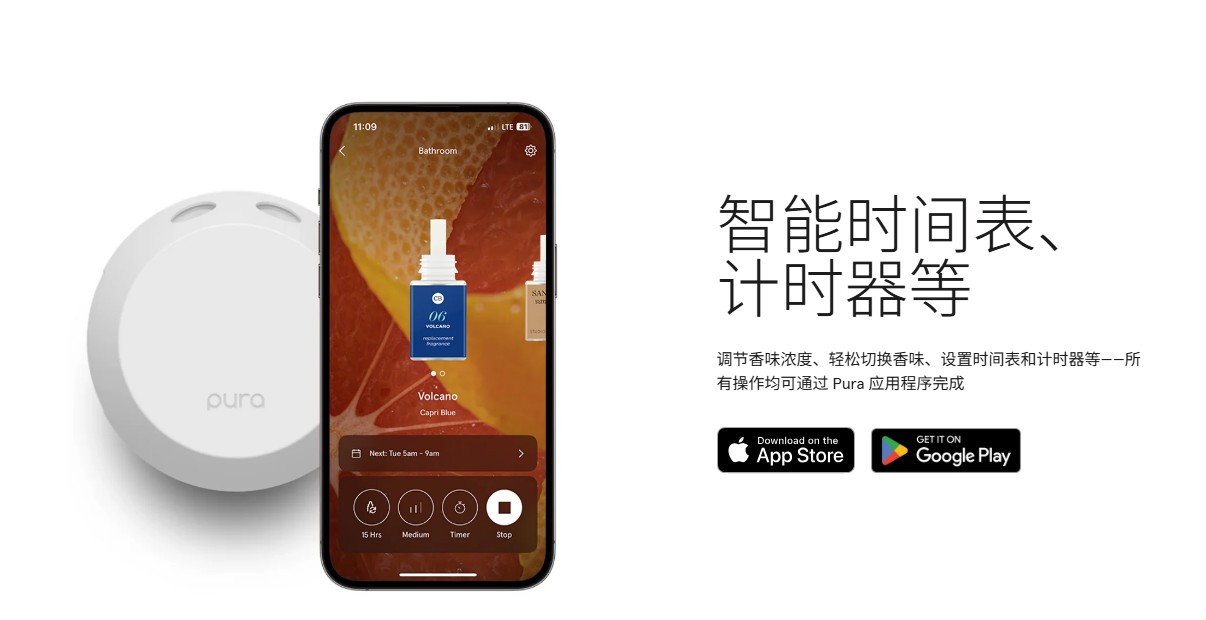 传统香薰蜡烛和喷雾的香气释放,受限于温度和空气流动,香味浓淡不可控,覆盖时间难预测。Pura 的创新在于:把“被动释放”变成“主动体验”。