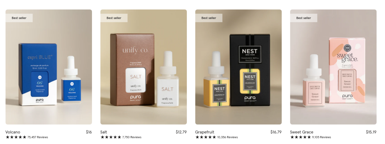 Pura 拥有内部香薰实验室,每季度推出新香型,精细覆盖节令与情绪场景:秋冬上新“南瓜香料拿铁”,春日发布“白茶花园”,夏季主推“海盐薄荷”。