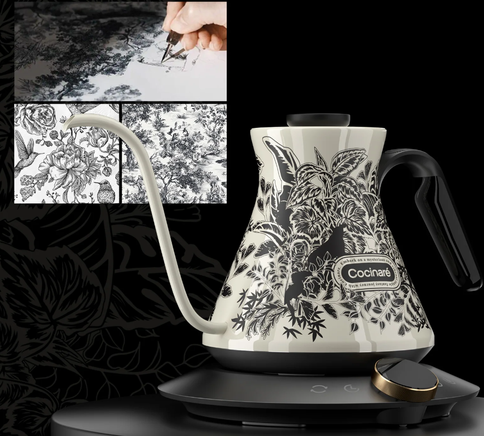 传统手冲壶的难点不在壶,而在“手法”。一旦注水角度、水流速度或水温偏差过大,结果就会完全走样。Cocinare 把研发重点放在“降低专业门槛”上,用技术替代经验。