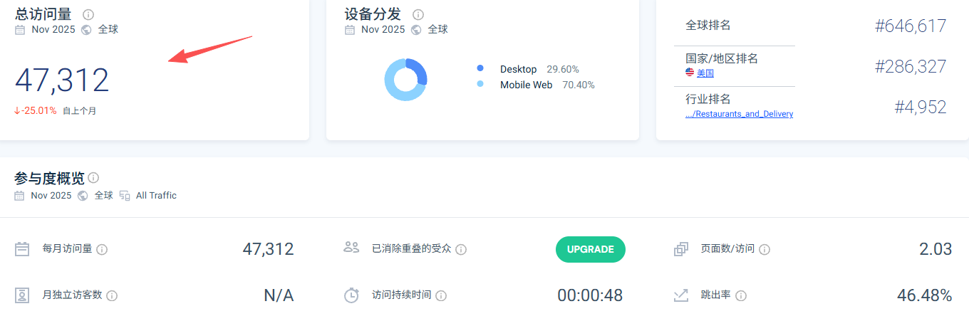 相比亚马逊的高举高打,TESSAN 的独立站显得相当克制。2024 年全年访问量约 60 万,月访问均在 4.6 万,在体量上并不显眼,但它承担的角色却非常关键。