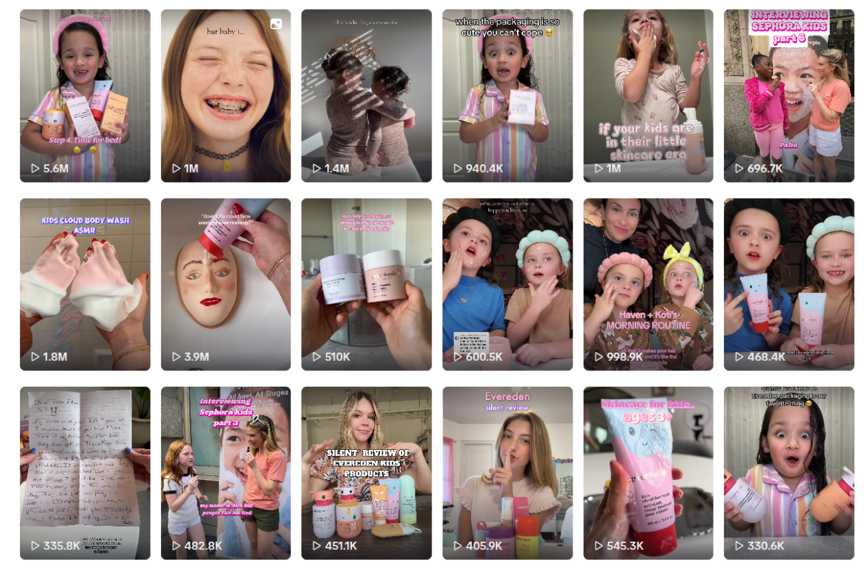这意味着:当TikTok、Instagram或YouTube 出现某种关于儿童护肤的新趋势时,Evereden可以在几个月内迅速响应,推出具有医学验证的新品,实现产品内容协同的“闪电闭环”。