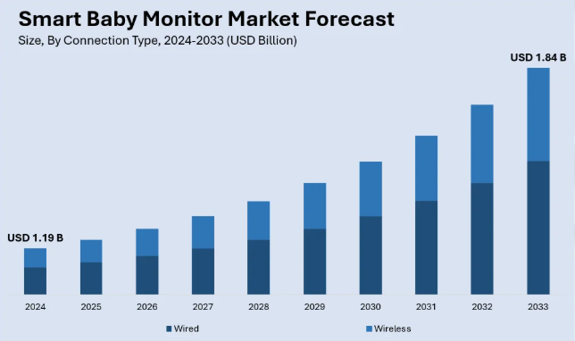 从市场规模来看,这门生意并不小。数据显示,2024年全球智能婴儿监护器市场约为11.9亿美元,北美地区占了46.8%的市场份额
