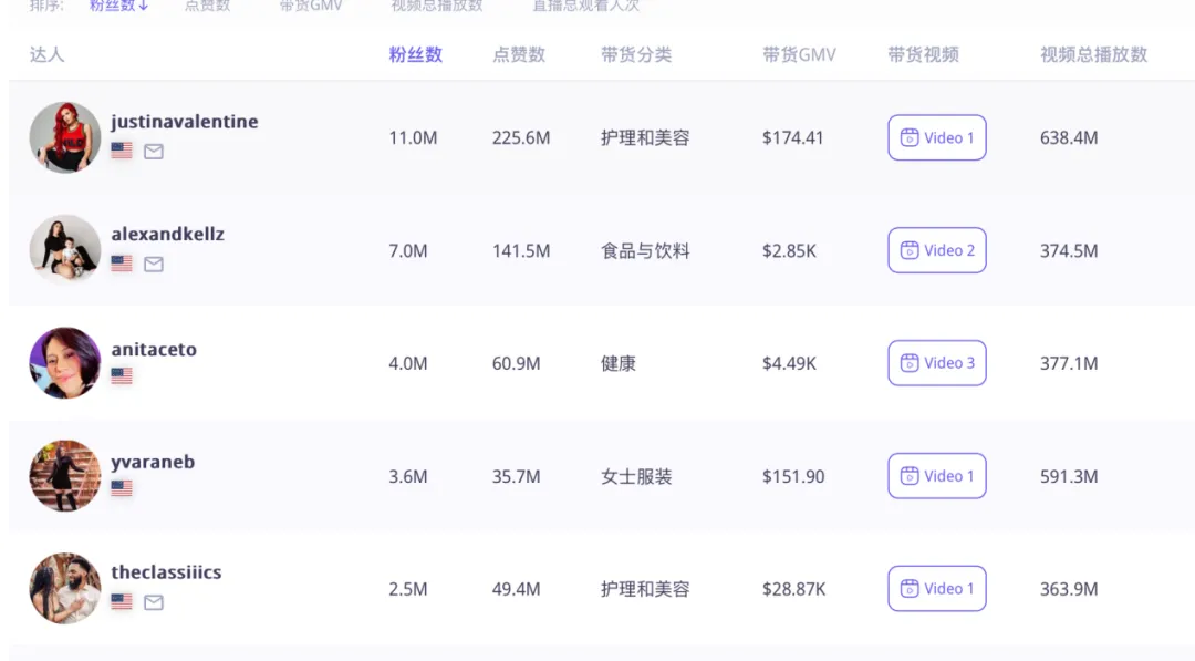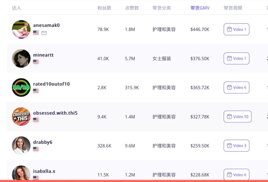 最近30天,关联的海外红人数量超过1600个,其中包括千万级红人、中腰部红人和尾部KOC。这表明The Ordinary在红人策略上执行得非常全面且有策略。