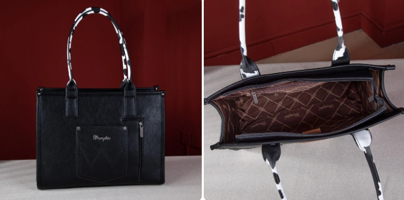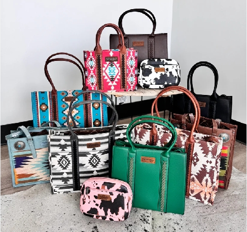 Wrangler系列大胆运用了奶牛印花、阿兹特克图案和流苏压花等设计元素,赋予每款包独特的个性。这些充满文化象征意义的设计为包款增添了视觉冲击力,建立起了强大的市场辨识度,增强品牌记忆点。