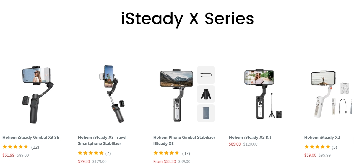 经过反复打磨,Hohem推出了全球最轻的三轴可折叠手机稳定器——iSteady X系列,仅重259克,独特的一体化设计让它可以折叠到口袋大小。售价不到90美元,性价比直接拉满。它迅速成为旅行和拍摄爱好者的心头好,被称为稳定器中的“变形金刚”。