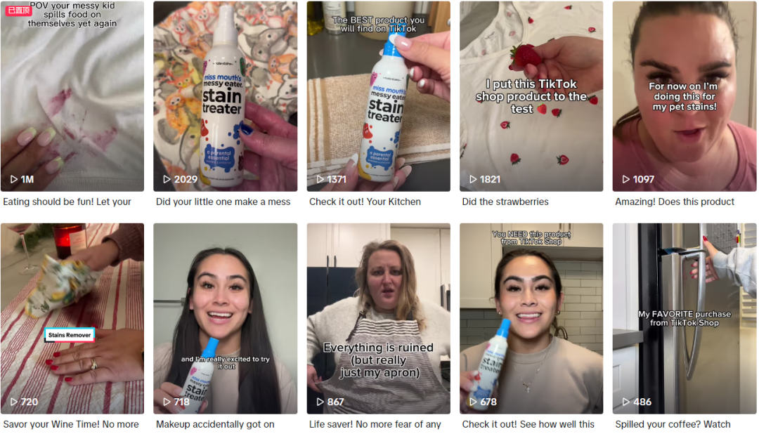 The Hate Stains Co.的销售渠道涵盖了从传统零售到新兴电商平台,其中以TikTok Shop和亚马逊为主要的销售平台。在TikTok Shop上,品牌通过与超过7800位网红达人的合作,发布了数千条带货视频,累计引入超过1059位达人进行直播带货,有效地将产品的特性和优势传达给了广大的年轻消费群体。