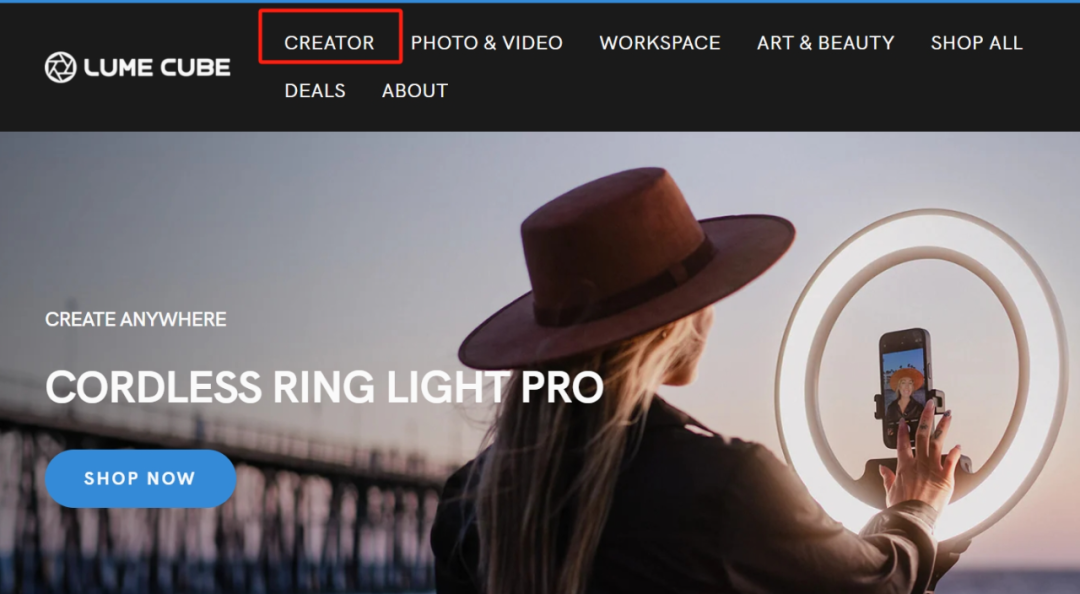 Lume Cube深知其目标受众,官网采用了极简风格,导航栏直观展示畅销产品和品牌信息,提升用户购买体验。在用户板块,他们创建了KOL网红专区,从YouTube、TikTok、Instagram等多个社媒平台细分,减少用户的选购困扰。