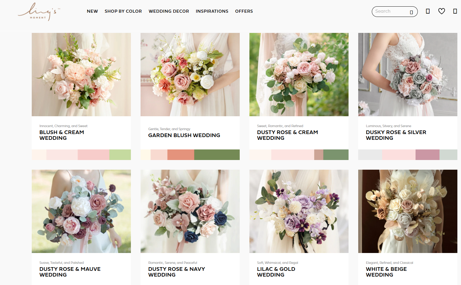 Ling's Moment作为一个“原生出海”品牌,从一开始就以海外市场为目标,专注于满足美国消费者的需求。品牌通过细致的市场研究,发现了美国新人对婚礼装饰的独特需求,特别是对花卉布置的偏好。在此基础上,Ling's Moment将品牌风格定位于French Country南法轻奢复古风,既满足了新人对高品质和浪漫婚礼的追求,又提供了性价比高的装饰方案。