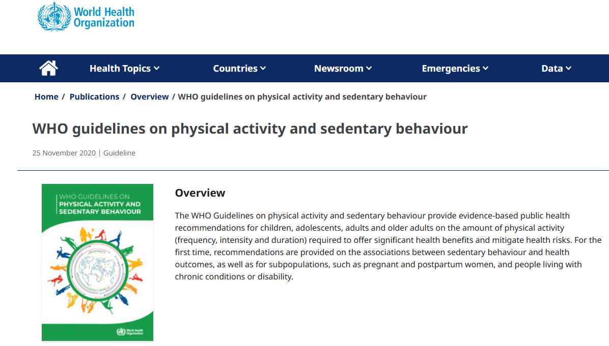 2020年,世界卫生组织(WHO)发布关于身体活动与久坐行为的全球指南,指出:长时间久坐是诱发心血管疾病、糖尿病、抑郁等慢性病的独立危险因素。尤其是每天久坐超过8小时却缺乏运动的人,死亡风险将增加20%~30%。